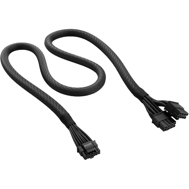 Designed purely for select NZXT C-Series Gold power supplies, the cable connects via two standard 8-pin PCIe inputs on the PSU side. It is engineered to safely deliver the full 600 watts of power required by high-end GPUs like the RTX 4090.