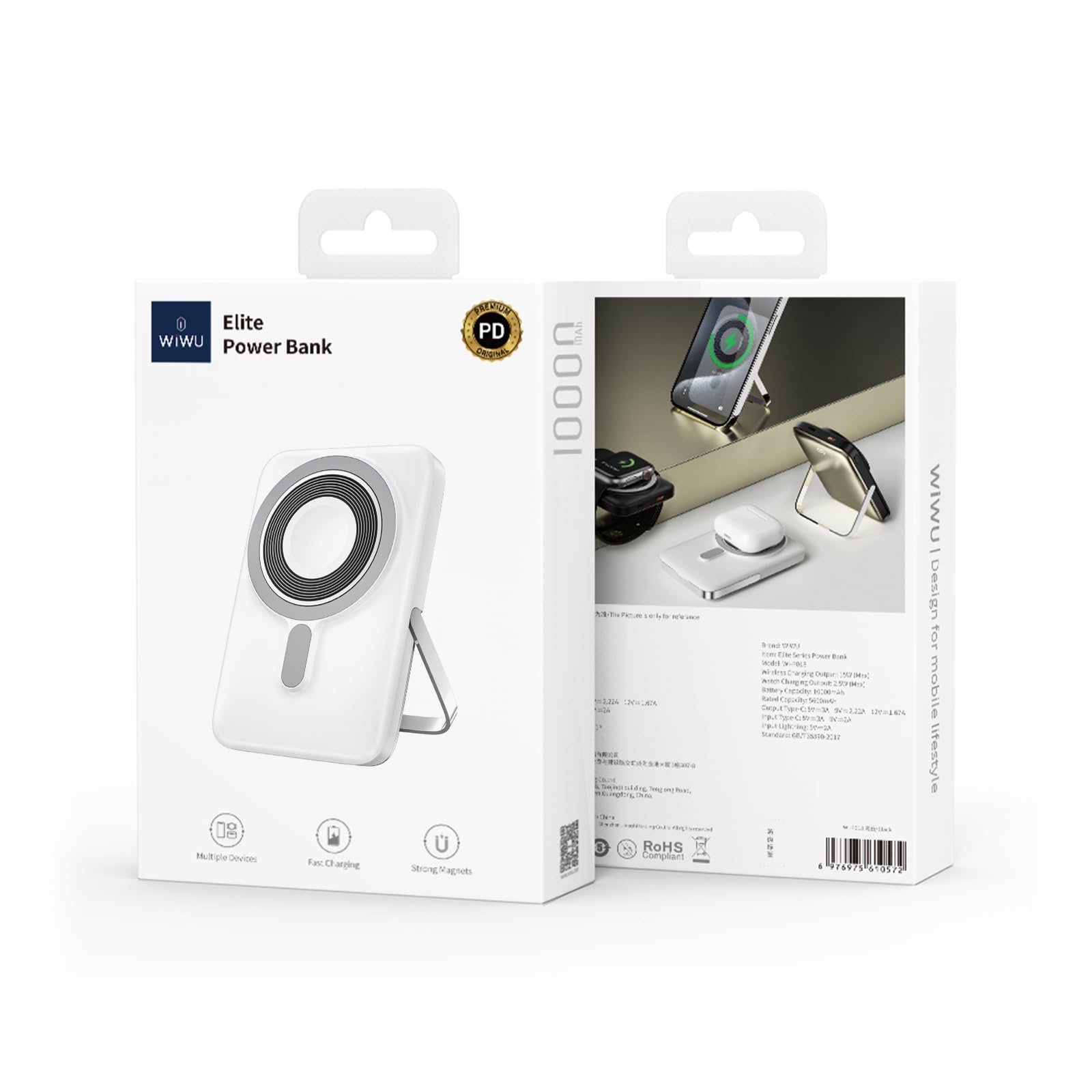 The WiWU Wi‑P018 Elite is a versatile high‑capacity power bank that combines wireless convenience with sleek design. With a 10,000 mAh (nominal) battery it supplies substantial energy to keep your smartphone, earbuds, smartwatch and other gear powered during travel, work or long days away from a plug.